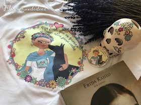 La primera camiseta que os traigo, viajo hasta Córdoba, otra fanática de Frida, Ester, se enamoró de ella con su xoloitzcuintle.